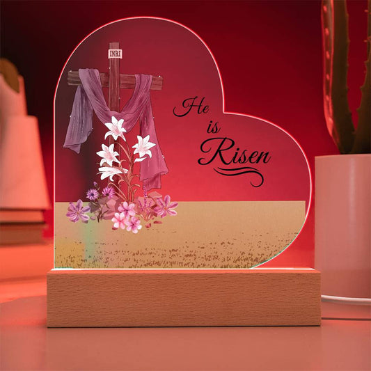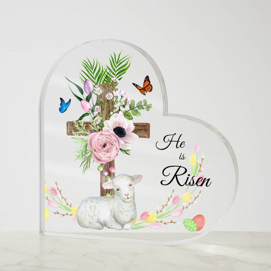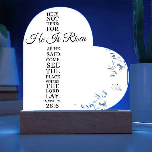 Matthew 28:6 | He Is Risen Cross | Heart Acrylic | With Base
