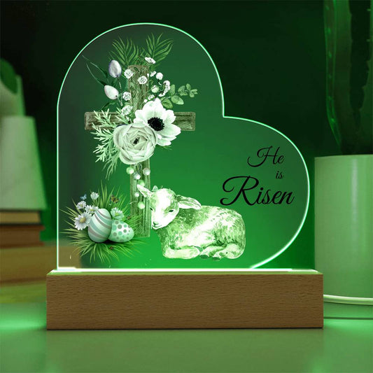 Christian Heart Acrylic | He Is Risen | INRI Cross | Easter Plaque | With Base