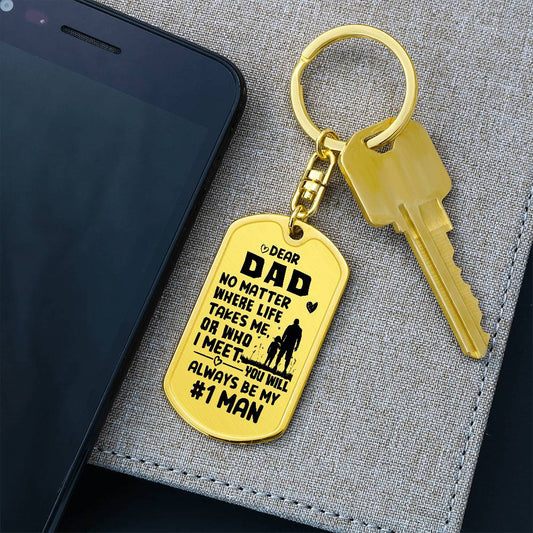 Dad #1 Man Dog Tag with Swivel Keychain