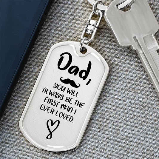 Dad First Man Dog Tag with Swivel Keychain