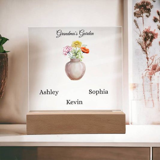 Grandma's Garden Acrylic Square Plaque | Personalize Names and Flowers
